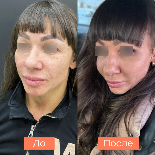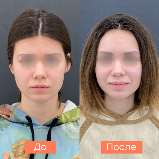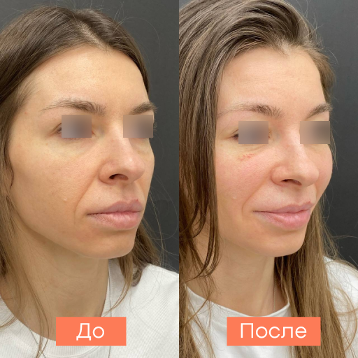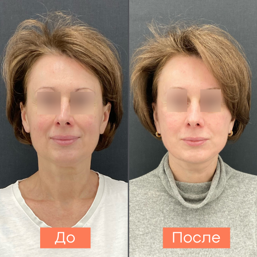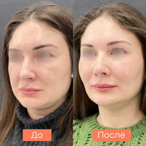 - отсутствие необходимости коррекции уплощения тканей средней зоны лица гиалуроновой кислотой, что создаёт пастозность, утяжеление тканей и деформацию лица ненужными лишними объёмами наполнителя,